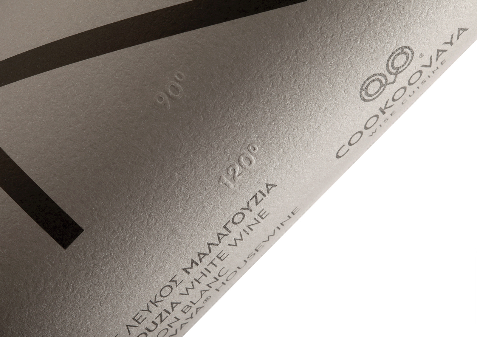 The name was chosen based primarily on the identification of the owl with knowledge and wisdom, aiming to show the deep knowledge of its chefs and their gastronomic "wisdom". On a second level, the name connects the owl –whose vision is excellent both during the day and the night- with eating out in a restaurant, something that can be done noon or evening. Cookoovaya® Wise Cuisine is the result of a partnership among five Greek cooks, bound by a common food culture. Pericles Koskinas, Kleomenis Zournatzis, Nickos Karathanos, Spyros and Vaggelis Liakos strongly believe in a rural and urban cuisine, long forgotten. They cook it anew, using agriculture goods from small-scale producers, simple techniques so as to highlight its authentic taste and origins. The food at Cookoovaya® Wise Cuisine is vibrant and clean, it follows and respects nature's cycle. The symbol of the logo was inspired by the eyes of an owl, designed in a way resembling the cooking hotplates of a professional kitchen. For the logo, the chosen typography has clean, simple lines and capital letters that equal the thickness of the logo symbol, in order to express the restaurant’s validity and professionalism. The winery of the Gkirlemi family is located in Prosilia, at the village of Polydendri, in Domokos. In the 350 acre vineyard, 12 Greek and foreign varieties are cultivated with love and respect for the environment. Four labels were designed (Assyrtiko, Malagouzia, Rosé Syrah & Red Merlot). The inspiration came from the letters of the words of every variety, in order to visually differentiate each label as well as to create a unified identity for these and the labels that will follow. By rotating the bottle we discover that the width of the label equals the maximum rotation ability of an owl’s head: 270 degrees.