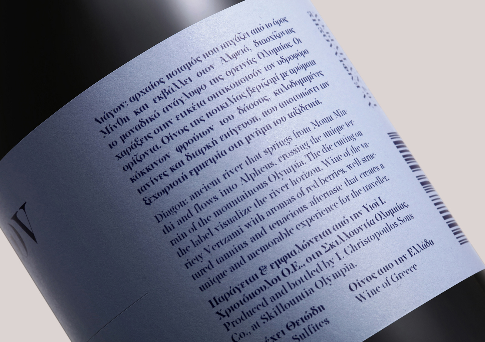 Οι χαράξεις στην ετικέτα οπτικοποιούν τον υδροφόρο ορίζοντα. Οίνος της ποικιλίας βερτζαμί µε αρώµατα κόκκινων φρούτων του δάσους, καλοδομημένες τανίνες και διαρκή επίγευση, που αποτυπώνει την ξεχωριστή εμπειρία στη μνήμη του ταξιδευτή.