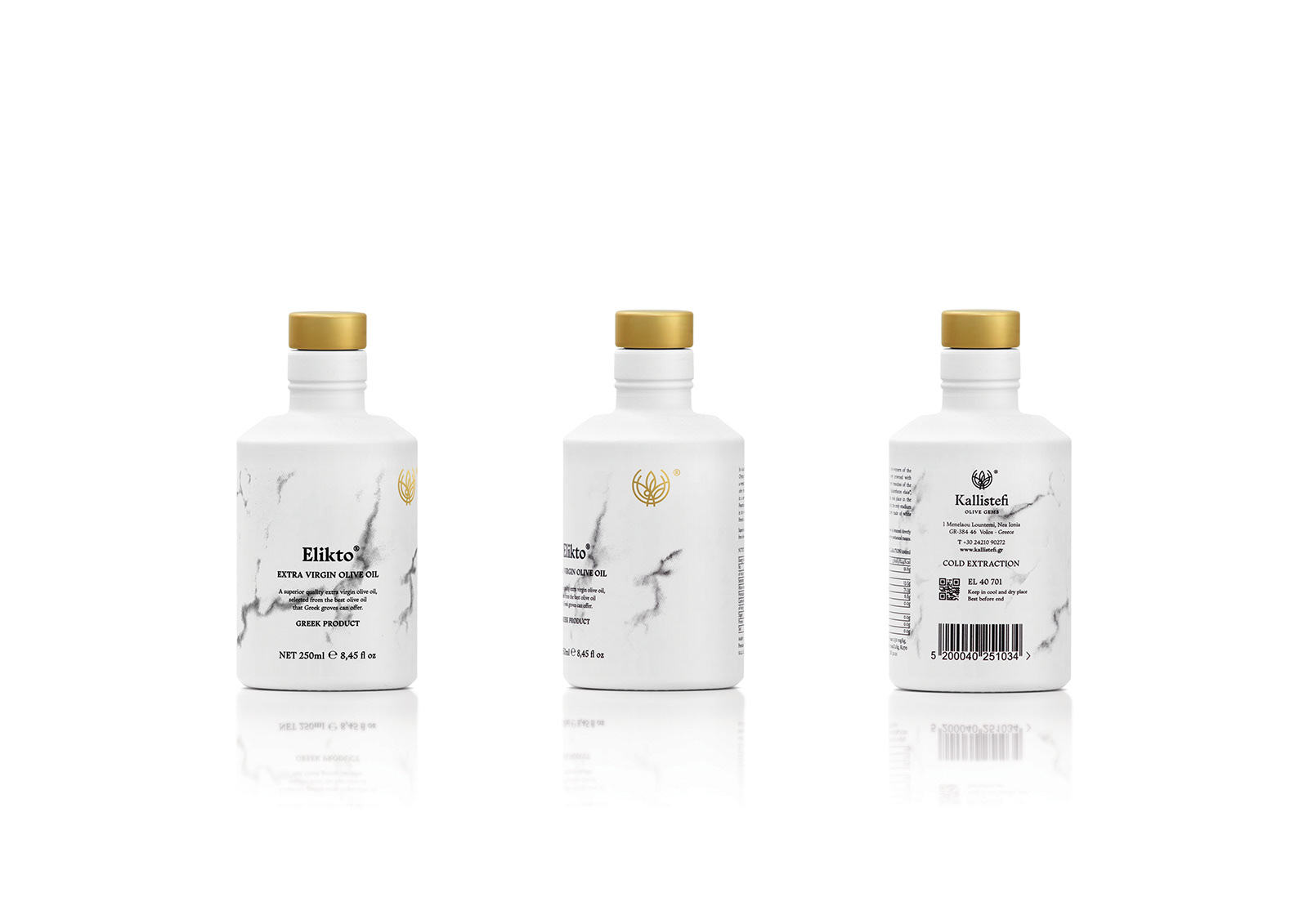 Kallistefi® Olive Gems specializes in the trade of olive oil and olive products. The name is inspired by ancient history and, particularly, by the wild olive tree, which the ancient Greeks called "kallistefanos", from the branches of which the honorary wreath "kotinos" was made in order to crown the winners of the Olympic Games, in a ceremony that took place in the Panathenaic Stadium (Kallimarmaron). Elikto® is a superior quality extra virgin olive oil. Its name is inspired by the title “Dragon Eliktos”, which was given to Hercules by the Orphics due to his versatility, similar to the versatility and persistence that embody the company’s vision to track and offer the best extra virgin olive oil from selected olive groves all over Greece. The packaging design was inspired by the marbles of the Panathenaic Stadium, the only stadium in the world made exclusively from Pentelic marble.