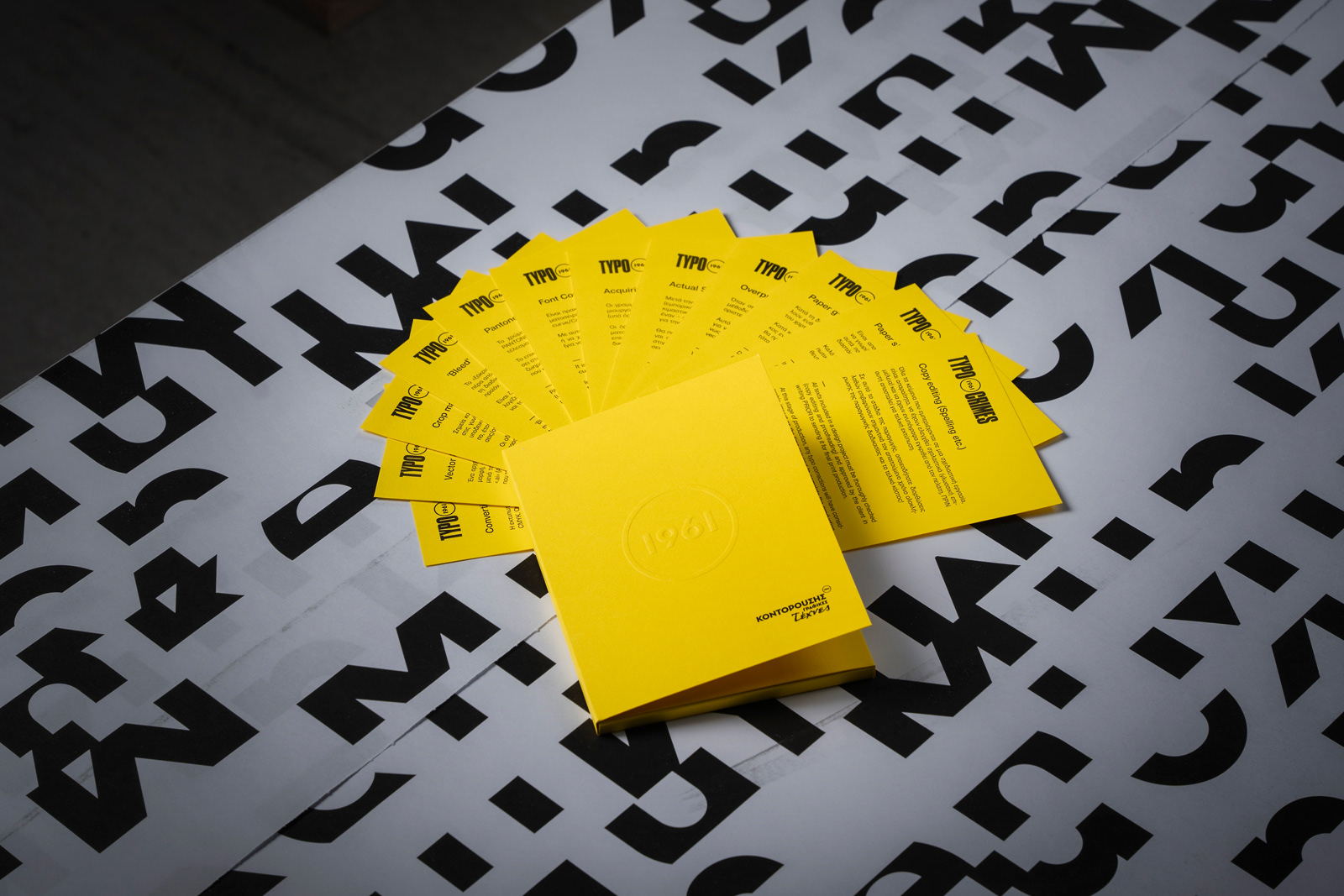 Για το χαρτί επιλέχθηκε από τα Χαρτιά Περράκης το Colorplan Factory Yellow (G.F Smith) μια απόχρωση του κίτρινου, το οποίο, σε συνδυασμό με το μαύρο μελάνι της εκτύπωσης, προσδίδει μια από τις πιο έντονες αντιθέσεις ώστε να προκαλεί το ενδιαφέρον και να ξεχωρίζει στο χώρο.