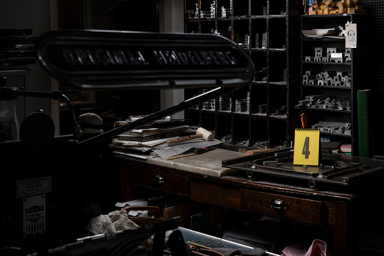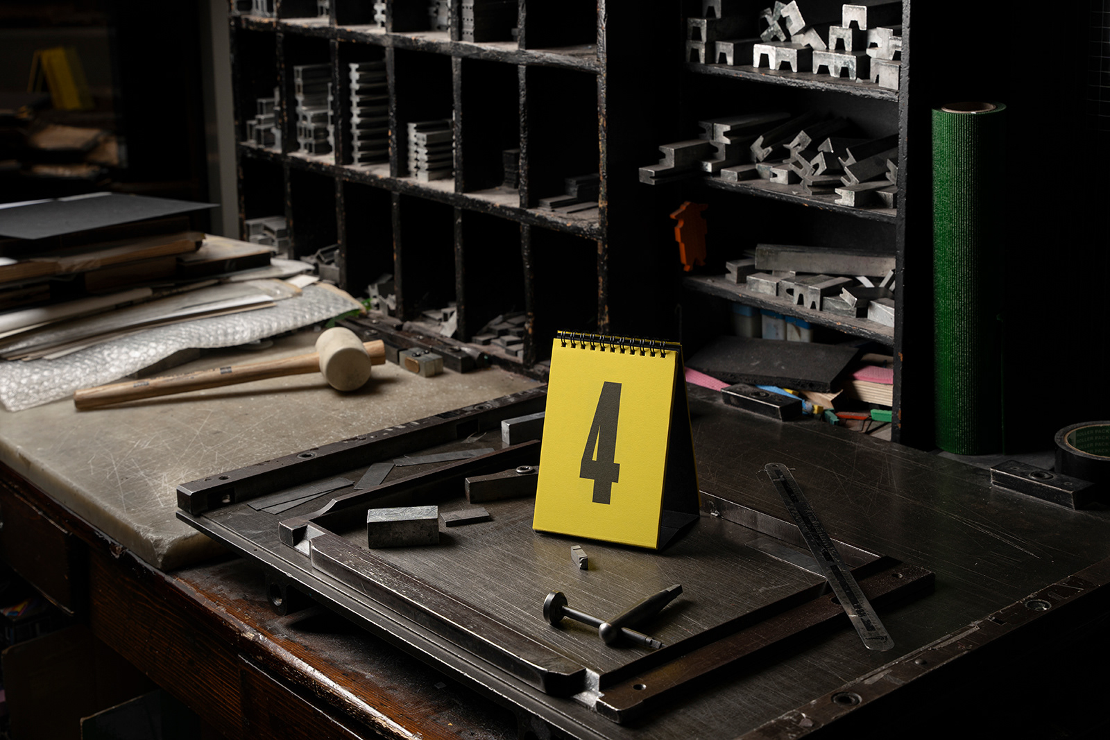 On the last page of the calendar, there is a foldable ruler included, which serves both to measure the 'crime' findings and as a functional tool on a desk. Serving as “evidence” of the “crime”, there are letterpress letters, from the vintage collection of the printing house of Kontoroussis Bros., enclosed in the packaging. In total, more than 1600 letterpress letters were used for this project.