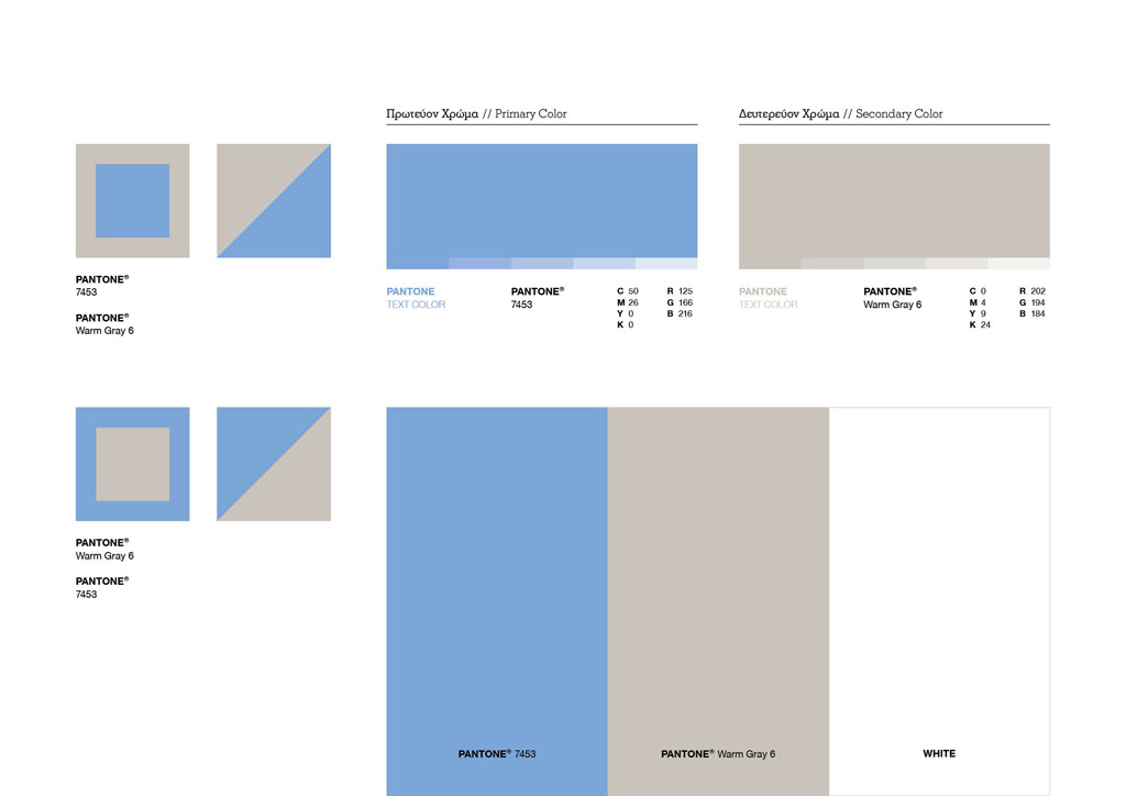 Για τη γραφή του ονόματος έχει επιλεχθεί Serif γραμματοσειρά, η οποία είναι διαχρονική, με καθαρό και στιβαρό χαρακτήρα, ενώ χρησιμοποιείτε μια ήπια απόχρωση του μπλε, που παραπέμπει στην θάλασσα, στην ηρεμία και τη γαλήνη.