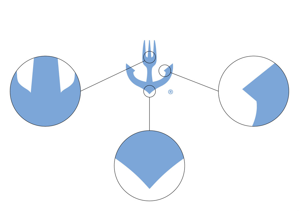 Στο σύμβολο του λογοτύπου, η άτρακτος της άγκυρας παίρνει το σχήμα πιρουνιού με τρία δόντια-όπως αυτά που χρησιμοποιούνται για τα ορεκτικά- ώστενα παραπέμπει στο αντικείμενο της επιχείρησης: το φαγητό και πιο συγκεκριμένα τους μεζέδες.