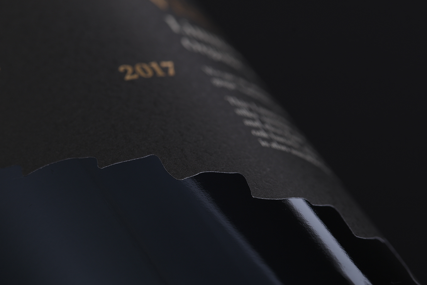 Έμπνευση για τον σχεδιασμό των ετικετών αποτέλεσε το αμπελόφυλλο, μέρος του οποίου αγκαλιάζει τη φιάλη.
